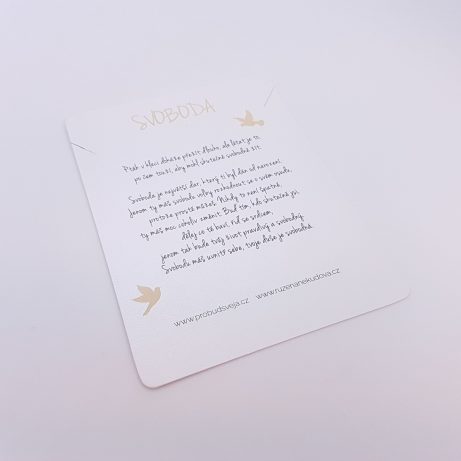 Šperky jsou nádherné jak ve zlaté, tak stříbrné barvě (řetízek, náramek, naušnice) zabalené krásně do dárkové obálky na motivační kartě Svobody od 250 korun.